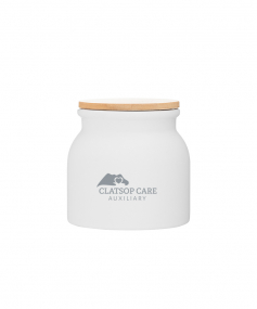 16.9 oz stoneware: matte white out / glossy white in with push-on bamboo lid; Hand wash recommended; Microwave safe with non-metallic imprint; 4 3/16 h x 4 3/16 (w/handle) w ; 500mL.