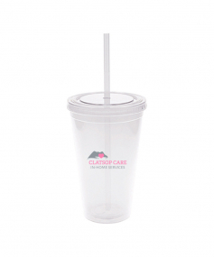 This is a BPA free 16 Oz. translucent acrylic double wall insulated cup with a matching PP straw. The O-ring keeps the straw in place. This tumbler includes a twist top lid. This item is non-microwavable and recommended hand wash only. Complies with Prop 65. 3.88" W x 6.13" H