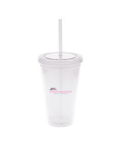 This is a BPA free 16 Oz. translucent acrylic double wall insulated cup with a matching PP straw. The O-ring keeps the straw in place. This tumbler includes a twist top lid. This item is non-microwavable and recommended hand wash only. Complies with Prop 65. 3.88" W x 6.13" H
