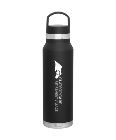 25 oz double wall 18/8 stainless steel thermal bottle with copper vacuum insulation, threaded insulated lid with carrying handle, high polish accent, stainless steel base, and powder coated finish. Hand wash recommended; Do not microwave. Dimensions: 10 H x 3".