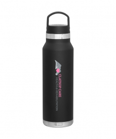 25 oz double wall 18/8 stainless steel thermal bottle with copper vacuum insulation, threaded insulated lid with carrying handle, high polish accent, stainless steel base, and powder coated finish. Hand wash recommended; Do not microwave. Dimensions: 10 H x 3".