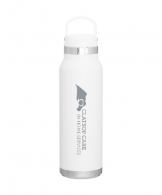 25 oz double wall 18/8 stainless steel thermal bottle with copper vacuum insulation, threaded insulated lid with carrying handle, high polish accent, stainless steel base, and powder coated finish. Hand wash recommended; Do not microwave. Dimensions: 10 H x 3".