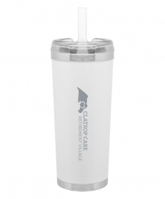 24 oz double wall 18/8 stainless steel thermal tumbler with copper vacuum insulation, stainless steel rim and base, threaded Eastman Tritan lid, snap closure, straw opening, and flexible wide silicone straw.