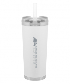24 oz double wall 18/8 stainless steel thermal tumbler with copper vacuum insulation, stainless steel rim and base, threaded Eastman Tritan lid, snap closure, straw opening, and flexible wide silicone straw.
