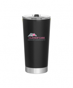 20 oz double wall 18/8 stainless steel thermal tumbler with vacuum insulation, and clear acrylic push-on swivel lid. Hand wash recommended. Do not microwave. Complies with FDA, Prop 65. 7.125" H x 3.75" W