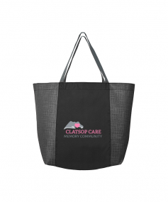 The Julian Plus Shopping Tote is constructed with 80 gram non-woven, coated water resistant polypropylene with stylish cross-hatch pattern, and a solid-color 210D polyester center section. This reusable tote bag measures 20" wide x 13" high, with an 8" wide gusset, so it's ideal for shopping. 20" W x 13" H x 8.66" D