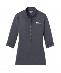 Break away from the ordinary in this button-down style polo that features cuffed 3/4 sleeves.