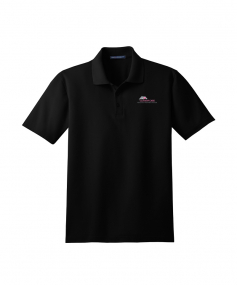 5.6-ounce, 60/40 cotton/poly. Includes double-needle stitching throughout. Flat knit collar and 3-button placket with dyed-to-match buttons. Features open hem sleeves and side vents.