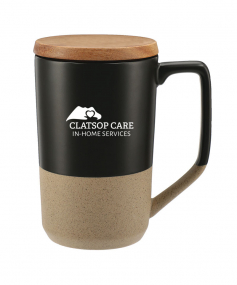 Cozy ceramic mug with a vintage finish on the body. Features an innovative groove design on the top for holding teabags. And perfect to drink tea with this mug. Wood, push-on lid, spill-resistant. 16oz.