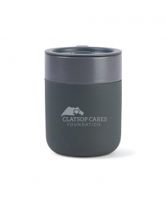 Crafted with durable ceramic and wrapped in protective matte silicone, this reusable mug is a high-quality replacement for disposable plastic or metal mugs. It's also BPA-free, dishwasher safe and microwave safe. Complies with CPSIA, Prop 65. 3" W x 4.4" H x 3" L